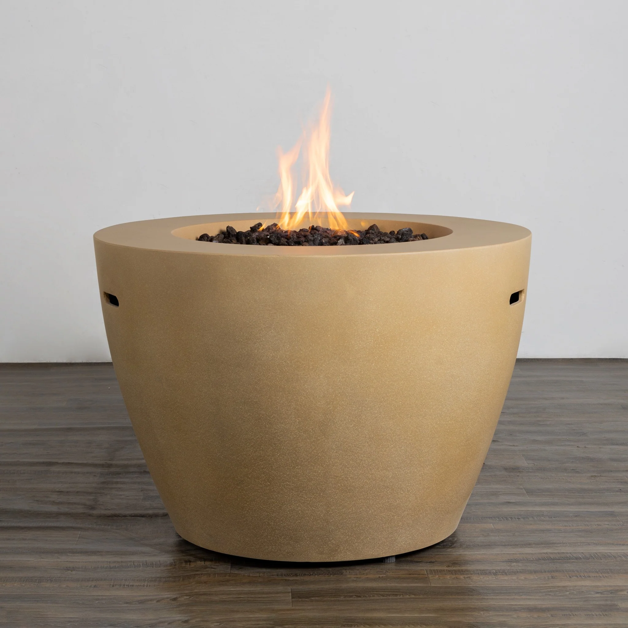 Expertly crafted from glass-fiber reinforced concrete (GFRC), the Beton Fire Bowl boasts exceptional durability and weather resistance while maintaining a smooth, refined surface that enhances its contemporary aesthetic. The natural texture and muted tones of the concrete material bring an organic, grounded feel to your outdoor space, blending effortlessly with modern, rustic, or industrial design styles. The hidden propane tank compartment keeps your setup clean and streamlined, eliminating the clutter of visible tanks and hoses, while ensuring easy access and hassle-free refills.