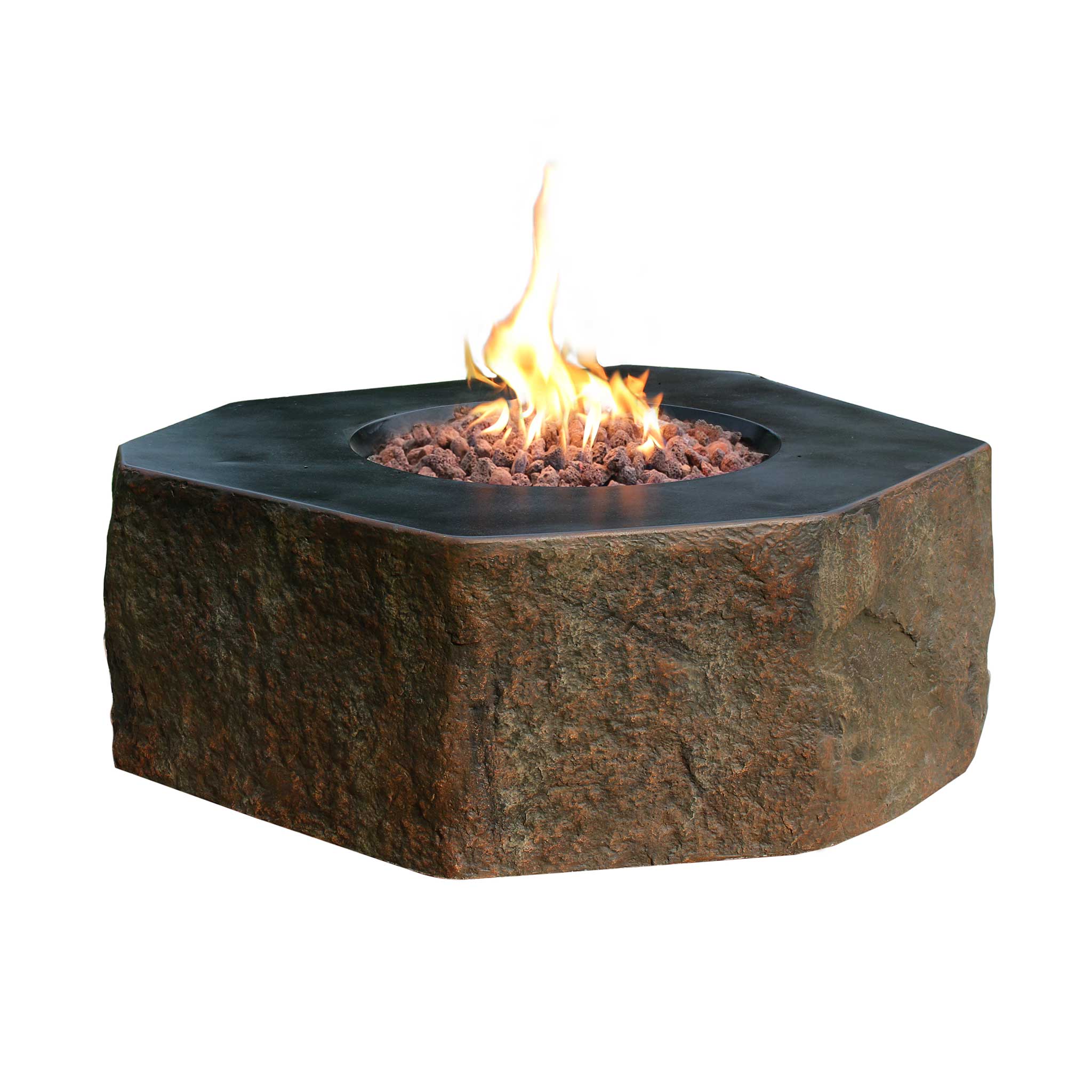 Constructed of glass fiber-reinforced concrete, the Columbia Fire Pit will remain durable and effective after years of use. With an 18-gauge 304 stainless steel burner, featuring an 18-gauge 304 stainless steel burner, the Columbia Fire Pit's 12-inch diameter burner ring sits in a 17.7-inch diameter pan. With a maximum heat output of 45,000 BTUs, the burner control system features a battery-operated push button spark ignition. In addition to excellent heat output, the Columbia Fire Pit and its components are CSA certified so you'll know that your fire pit meets all safety expectations. Included with the Columbia Fire Pit is lava rock media, which will extend the natural feel of your fire pit.