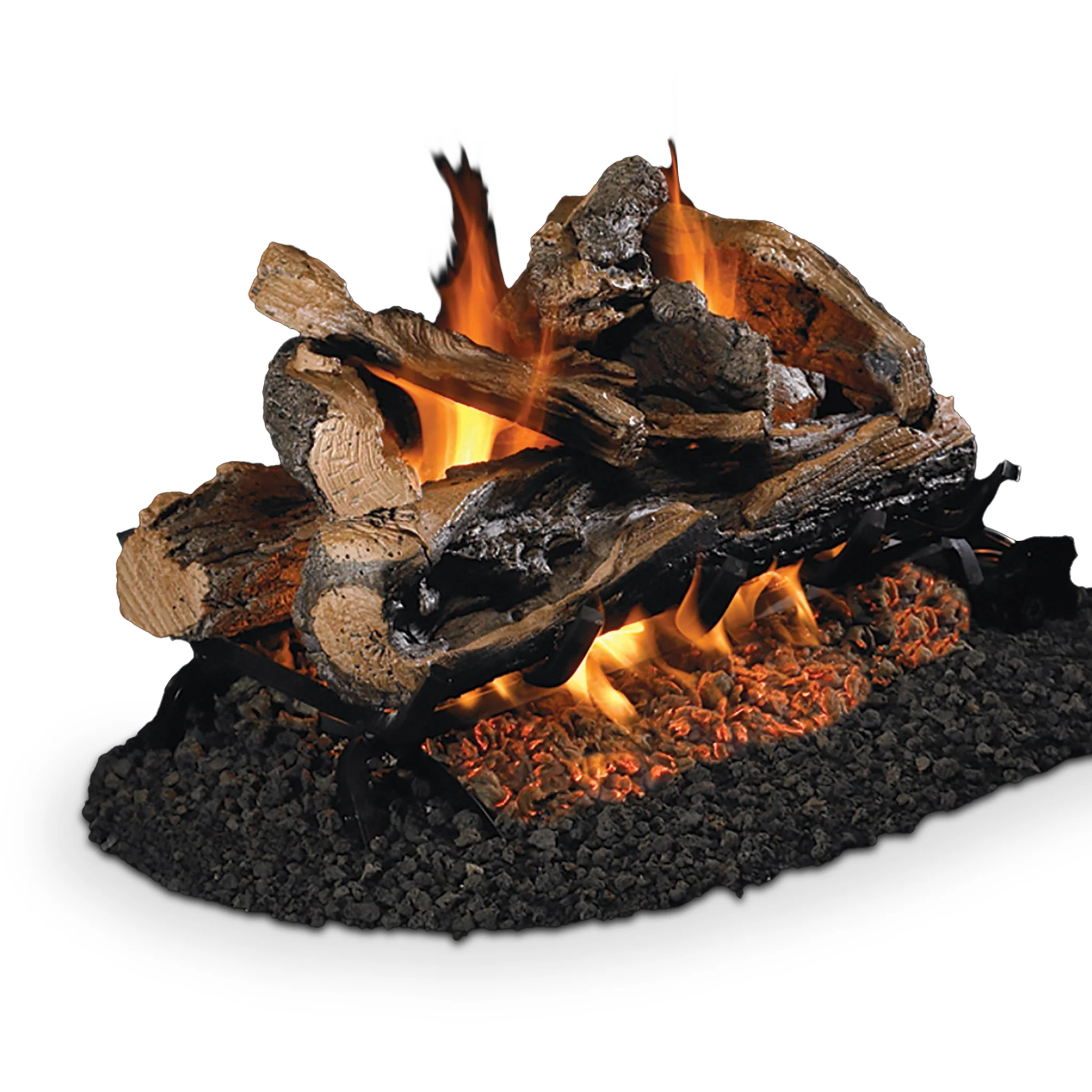 For those who love the traditional aspect of a wood-burning fire, the Real Fyre Vented Charred Rugged Split Oak Gas Logs can take you there without the soot and upkeep of a wood-burning fire. Hand-crafted with care to achieve ultimate realistic details, this gas log set will give you a cozy fire that will be a gathering point of your family for years to come.